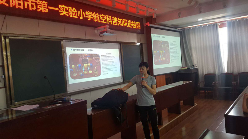 6月6日航校青少年俱乐部携手世界跳伞冠军张阳梅走进安阳市第一实验小学,为实验小学120多名师生带来了一次精彩的航空科普活动。在活动现场,讲解员结合安阳航校开展航空活动的情况,以PPT的方式深入浅出地介绍了航空知识,跳伞运动员认真回答学生们提出的各种问题。第一实验小学的学生们认真聆听讲座,踊跃向跳伞世界冠军提问,现场气氛十分活跃。活动结束时,学生们仍沉浸在科普活动的欢乐中,意犹未尽,不愿离开。 为落实体育总局赵勇副局长提出的“五五六”战略,航校青少年俱乐部积极谋划,提出了“航空科普进校园”的口号,精心设计科普形式和内容,并与多所中小学联系,促成科普活动的实施。截至今年6月,俱乐部已先后前往九府爱尚园、钢三路小学、第七中学和第一实验小学开展航空科普进校园活动。活动充分展示了航空运动的魅力,介绍了航校航空活动开展情况,尤其是互动环节成了活动中的一大亮点,训练处飞行员和国家跳伞队运动员为学生们答疑解惑,介绍了他们自己的飞行或跳伞经历、飞机构造、飞行原理、跳伞队员选拔标准等等,引起了师生们的极大兴趣,整个活动受到了广大师生的一致欢迎和好评。 航校青少年俱乐部今后将继续按照学校“五五六”发展战略部署,开展形式多样的航空科普活动,从小培养学生的航空运动意识,激发学生们崇尚科学翱翔蔚蓝的梦想和热情,为我国航空体育事业的发展做出应有的贡献。