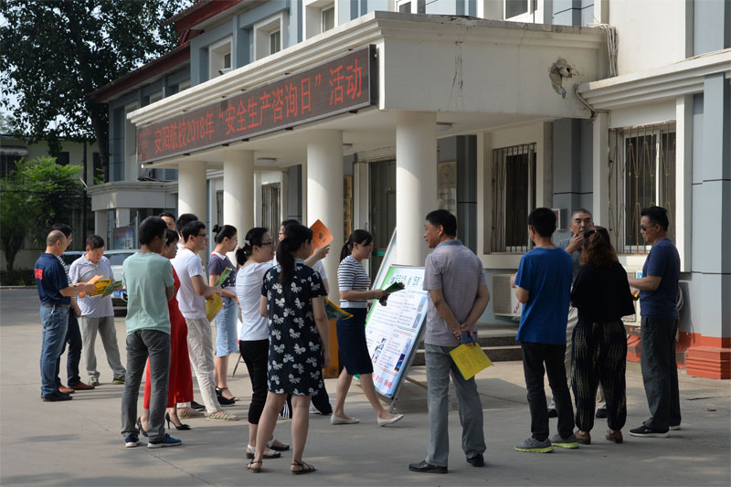 为落实安阳航校关于印发《2018年“安全生产月”和“安全生产万里行”活动方案》的通知(安航字〔2018〕57号)文件精神,结合校领导在动员会议上的工作部署。 6月14日上午,在学校办公楼前举办了“安全生产宣传咨询日”活动。活动以“生命至上,安全发展”为主题,以滚动播放安全消防知识宣传标语为衬托,以“飞行安全,从五防做起”、“消防知识宣传”、“家庭失火”、“安全用电”、“电梯故障”、“装修污染”等应急处置知识为主要宣传内容,现场进行了安全咨询和讲解,并发放宣传单200余份。 此次活动广泛传播了安全生产知识,提高了干部职工的安全意识,提升了应急处置事故的能力,大力推进了我校空地安全高品质发展。