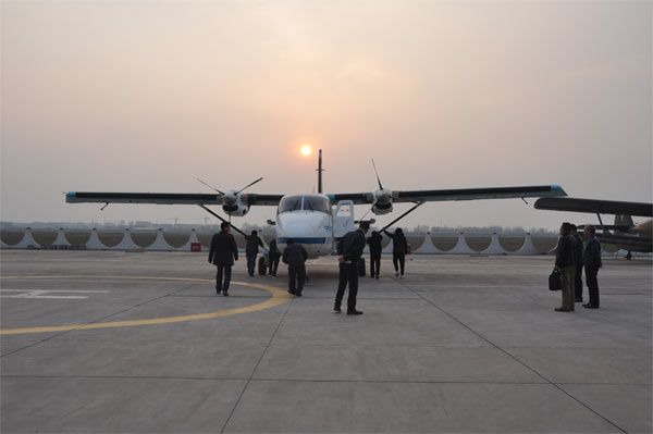 3月28日,春风和煦,下午6:30,在夕阳余晖的映照下,一架编号为B-50AT的国产Y12飞机徐徐降落在安阳航校机场内。这是体育总局交付给安阳航校用于保障国家集训队训练比赛的第二架国产Y12型飞机。 此次长途跨区调机,机务先于3月19日到达哈尔滨飞机制造厂,进行前期检查,相继办理了适航证件(三证),编入了公司运行规范,积极做好飞行保障工作。飞行人员于3月21日到达哈尔滨,联系试飞并申请调机。接机过程中,在学校领导和相关部门努力下,协调各种空中管制,办理与东北区调、民航总调、郑州区调的跨区协调工作。最终,从哈飞经朝阳机场,顺利到达安阳航校。