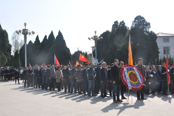 4月1日下午,安阳航校党委、团委组织约50余人党团员到安阳市烈士陵园祭扫瞻仰长眠在这里的先烈们。 在纪念碑广场上,安阳航校副校长张俊铭为敬献的花圈整理了挽联。 在安阳革命历史纪念馆里,学校党团员随着人流参瞻革命先辈们的光荣事迹。从安阳第一个党小组的成立到轰轰烈烈的国内革命时期与反动武装的革命斗争,从抗日救亡战争的打响到解放战争时期安阳的解放,从建国后前30年安阳的斗争建设到改革开放30年的蓬勃发展,我们深刻缅怀在安阳这片土地上抛头颅、洒热血,保卫家园、建设家园的先烈们。他们的精神永垂不朽,他们的事迹催人奋进。 从纪念馆出来,大家怀着难以平复的心情祭扫了革命烈士墓。 整个祭奠瞻仰活动是一次无声的鞭策,在新时期改革发展进程中,党员领导干部起到先锋模范带头作用,从本职工作做起,牢固树立“四个意识”,跟党走,为实现两个一百年奋斗目标,而努力奋斗。