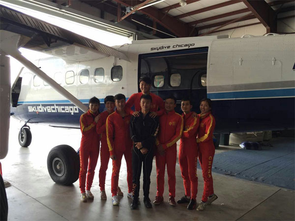 8月26日,国家跳伞集训队完成近20天的赴美训练,回到安阳航校。 此次国家跳伞集训队挑选了10名优秀队员,赴美国芝加哥跳伞俱乐部,为明年在美国芝加哥举行的第34届世界跳伞锦标赛作适应性训练。期间,跳伞80多次,强度大、节奏快、效率高。并同时进行了风洞训练,提高了风洞运营、教学等知识技能。收获颇丰。 为备战9月初在山西太原举行的第17届亚洲跳伞锦标赛,队员们8月27日,回来后的第二天,就开始了高强度训练。队员们精神饱满、气势昂扬,誓言要用训练的汗水赢来比赛的胜利。