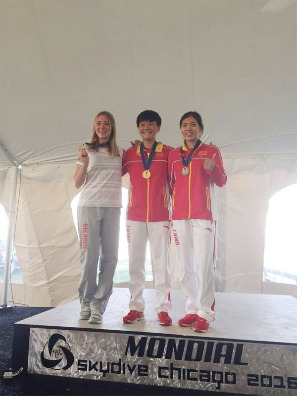 在集体项目中,中国跳伞健儿团结奋斗、勇攀高峰,在女子集体定点项目上,取得第一名的优异成绩。在个人项目中,韩秋立在女子个人全能、贺亚楠在男子青年特技和全能、赵恬恬在女子青年定点和全能、张玲在女子青年特技项目上,不畏强手、顽强拼搏,摘得桂冠。